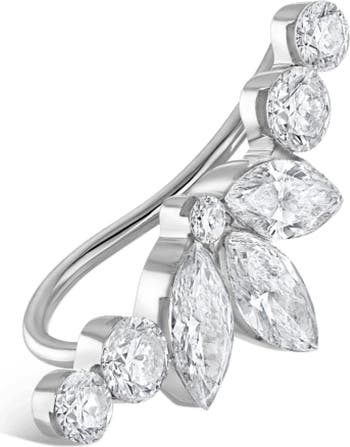 An invisible 18-karat gold setting gives a floating appearance to this diamond lotus garland ear climber that will make a dazzling statement on your curated ear.