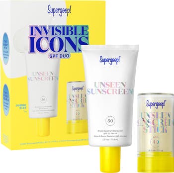 - Unseen Sunscreen Stick SPF 40 (0.7 oz.): a 100% invisible sunscreen stick for on-the-go, clear sun protection that helps reduce the appearance of oiliness and glides seamlessly over makeup