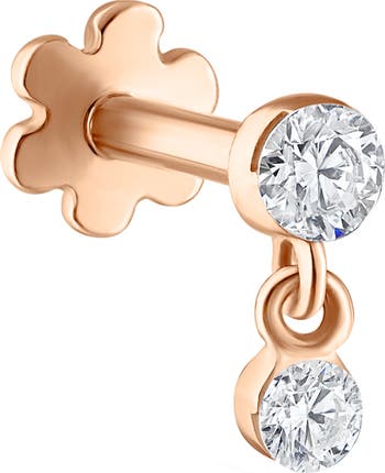 An essential element of the curated ear, this tiny sparkling stud is cleverly designed to make the diamond appear to float upon the ear.