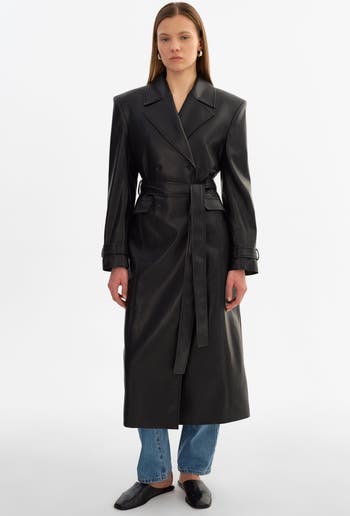 A modern take on a timeless outerwear staple. The Iolanthe Faux Leather Trench Coat features a confident shape with a defined waist, balanced by an easy, wearable feel. Designed to layer effortlessly, it adds impact without feeling overdone.