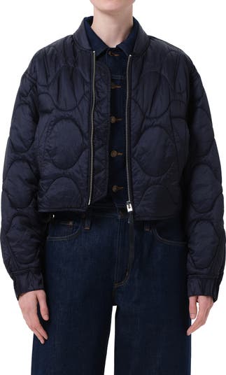Wavy quilting ripples down this clean-cut bomber jacket featuring a classic blade collar to complete the look.