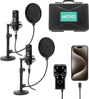 PORTABLE: Microphone audio interface for recording professional quality audio. Connects directly to iPhone 15 through the USB-C adapter. BROADCAST-QUALITY AUDIO: Versatile cardioid condenser microphone records 48kHz/16 bit broadcast quality sound resolution with no latency, and features a powerful frequency response of 20Hz to 20kHz. EFFECTIVE: Double layer mesh pop filter removes noise twice as effectively as standard pop filters. ADJUSTABLE TABLE MIC STAND: Solid steel desktop mic stand adjusts to the perfect height for all your desktop microphone needs. 1-YEAR WARRANTY: We’ve got your back! Our products are designed to ease your technical woes, not add to them. Our friendly US-Based support team is here to help