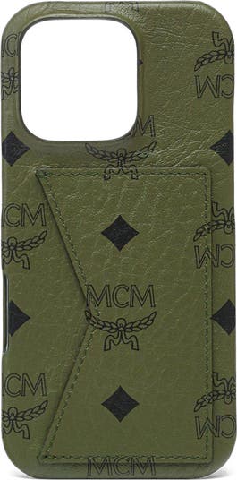 Visetos monogram canvas iPhone case with exterior pocket and natural nappa leather trim
