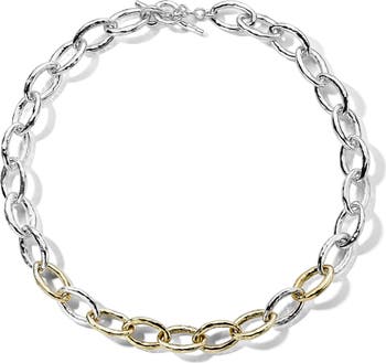 Slim 18-karat gold links offer bold contrast to the shiny sterling silver of this hammered collar necklace that's a fine take on the brand's iconic style.