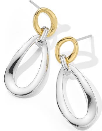 Contoured links of 18-karat gold and sterling silver beautifully reflect the light in these small and sophisticated two-tone earrings.