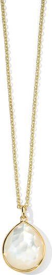 A mother-of-pearl doublet is nestled in a teardrop bezel at the center of this pendant necklace crafted from sterling silver and plated in 18-karat gold.