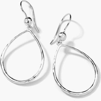 A round-cut diamond solitaire sets the radiant tone for each hand-hammered earring in this comfortably lightweight pair.