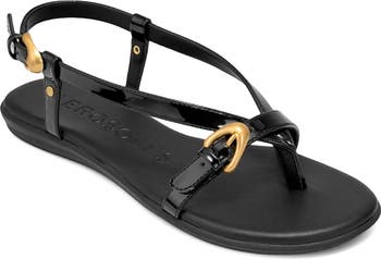 Polished buckle hardware lends an extra touch of finesse to this graceful slingback sandal set on a flexible, lightweight sole.