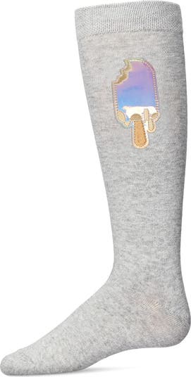 Only the best for your favorite girl, so have her try on a pair of our Iridescent Popsicle Knee Highs! These solid socks are finished with a soft, flat knit, and an embroidered patchwork popsicle that looks just as sweet as she is. Crafted from a soft and smooth cotton blend, with flexibility and generous stretch so her socks move with her. Added spandex for an ideal fit that offers superior shape retention and less pilling.