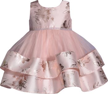 Your little one will be fluttering through the party looking their cutest in this frilly dress with shimmery foil flowers and a tiered tulle skirt.