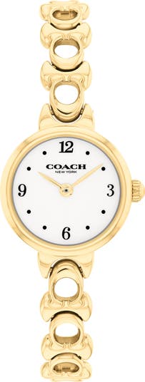 The brand's iconic typeface brings both readability and instant recognition to this diminutive watch set on a slender logo-link bracelet.
