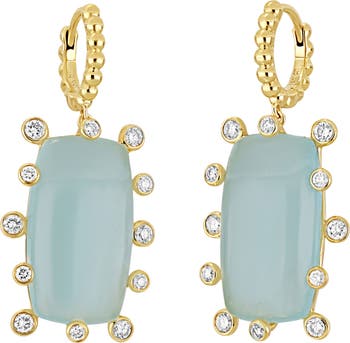 These handcrafted earrings stun with milky aquas framed by bezel-set diamonds, adding significant polish to even your most casual ensembles.