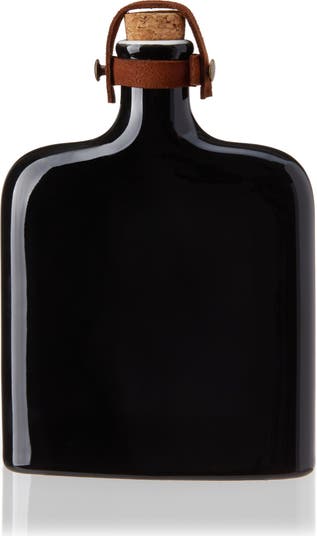 Crafted from ceramic with a striking black glaze, this flask is a unique display piece for your bar. It comes with a natural cork and genuine leather strap.