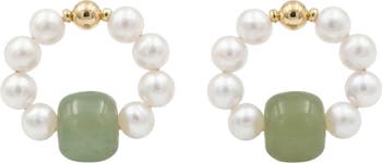 Featuring a beaded freshwater pearl hoop and a delicate green nephrite bead as the centerpiece, Isa will bring real substance to your stack. Natural nephrite made by handwork of carving and polishing.