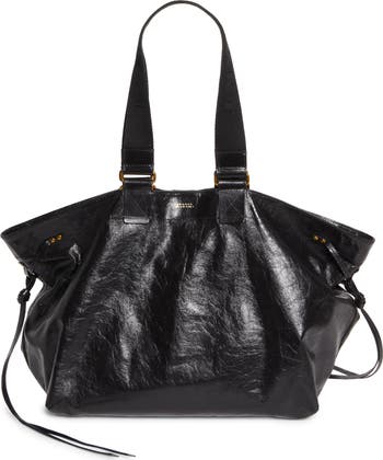 Crafted from glazed leather, this spacious shopper is styled with swingy side laces and two sets of handles. Use the short leather pair for handheld carry, or slip the longer woven straps over your shoulder for hands-free convenience.