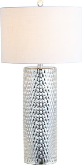 - The silver textured column base adds modern glamour to this perfectly proportioned table lamp