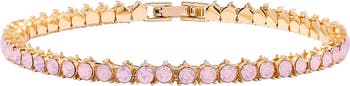 Blush-hued cubic zirconia lend dreamy sparkle to a tennis bracelet designed to bring timeless elegance to your elevated looks.