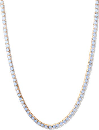 Misty blue cubic zirconia imitate the shimmer of opals on this glamorous tennis necklace plated in warm 14-karat gold.
