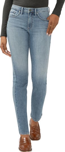 Fitted through the hips and thighs, these slim-cut straight-leg jeans are made from shape-retaining Luxe Stretch denim in a casual light wash.