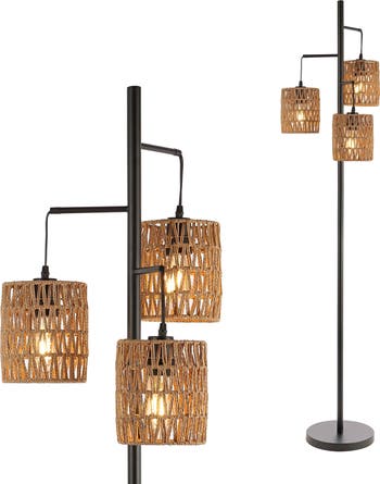 Vintage style meets Bohemian chic in our retro 3-light floor lamp. LED bulbs provide warm, bright light for reading. The diamond-patterned paper rope lampshades add a cozy ambiance to the living room or bedroom.