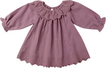 Tonal embroidery softly patterns this breathable organic-cotton dress that's framed by long sleeves.