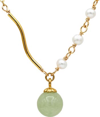 seree Isla Green jade and freshwater pearl necklace, Main, color, Light Green