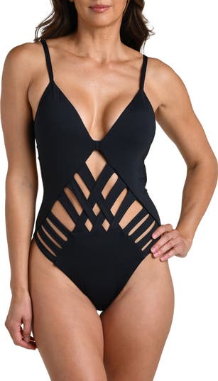 Make a statement in and out of the water in a strappy cutout swimsuit with adjustable straps for support.