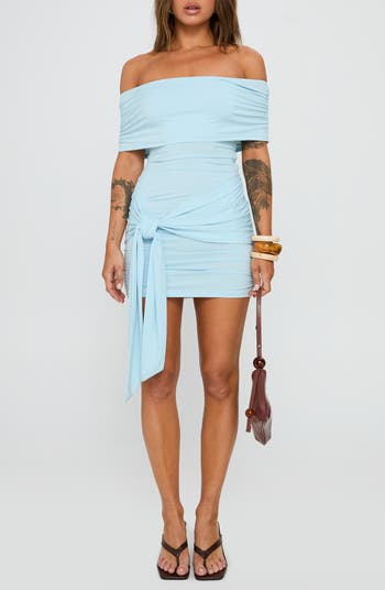Island Off the Shoulder Tie Waist Minidress