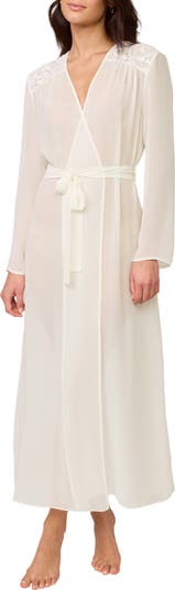 Delicate Venetian-lace sleeves trims this sheer chiffon robe to bring an ethereal element to your special day and beyond.