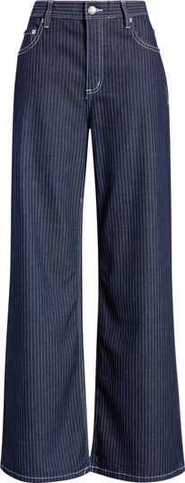 Polished stripes add a refined element to traditionally casual jeans cut from nonstretch denim in a straight-leg silhouette.
