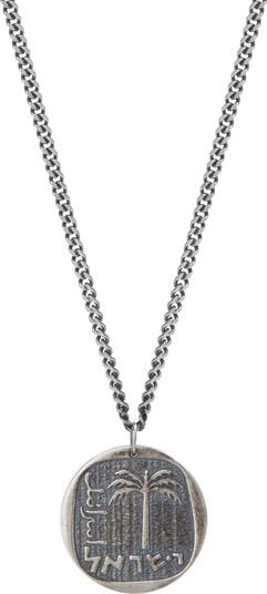 A circular pendant featuring a palm tree centers this Italian-made necklace made from recycled sterling silver.