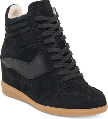 A hidden wedge heel lofts the look of a casual high-top sneaker made with smooth suede and a stripe of leather to elevate your everyday looks.