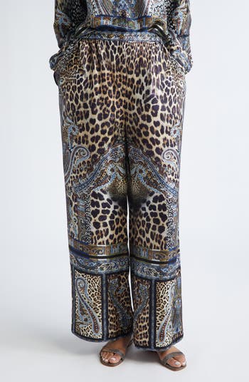 Camilla's signature hand-set crystals catch the light with your every move in these silky wide-leg pants featuring a hypnotic mosaic of leopard spots and paisley motifs inspired by Turkish textiles.