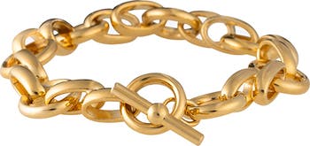 A gleaming bracelet handmade from 14-karat gold-plated links brings modern glamour to your wrist stack.