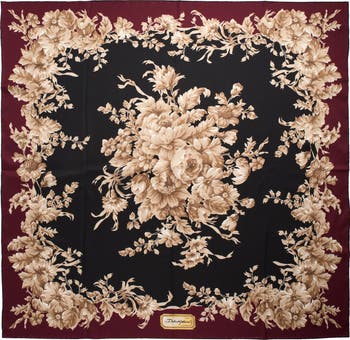 A garden's worth of sepia blooms framed with a contrast border brings visual depth to this square scarf made in Italy from lustrous silk twill.