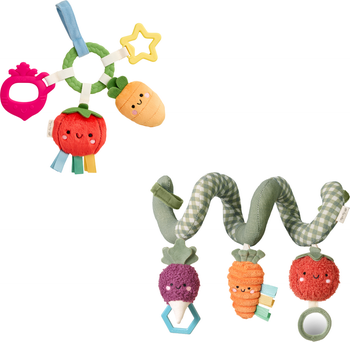 • The Bitzy Busy Ring Teething Activity Toy is full of dangling sensory toys and can hang right on a car seat or stroller. There are toys that jingle, crinkle and more! Endless adventures await with your babe’s new travel tagalong. Itzy Bitzy Spiral- Watch as your babe reaches for the dangling ring, smiles at their reflection in the hanging mirror, and grasps for the ribbons. Our cotton and soft velour fabrics are gentle to baby’s touch. For the many travels ahead, easily attach the Itzy Bitzy Spiral to your car seat and stroller for fun on-the-go!