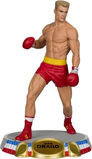 Movie Maniacs Rocky Wave 3 Ivan Drago Rocky IV 6-Inch Scale Posed Figure: I must break you! The amazing underdog story comes to life as a Movie Maniacs figure! The Ivan Drago posed 6-inch scale figure features all the likeness of Dolph Lundgren. Accessories include an extra head, printed backdrop, environmental base, collectible art card and a secret bonus item! It also includes a "VS" display piece to re-create your favorite Rocky boxing contest or create your own ultimate dream match! It also can be used as an art card holder. Drago comes in window box. Ages 12 and up. Rocky Balboa (Sylvester Stallone) holds the world heavyweight championship, but a new challenger has stepped forward: Drago (Dolph Lundgren), a six-foot-four, 261-pound fighter who has the backing of the Soviet Union. This time, Rocky's training regimen takes him to Siberia, where he prepares for a globally televised match in the heart of Moscow. But nothing can truly prepare him what he's about to face - a fight to the finish, in which he must defend not only himself, but also the honor of his country!
