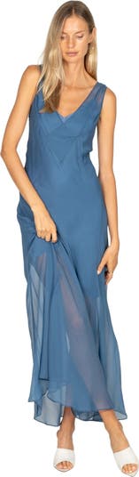 Crafted from light chiffon, the elegant "Iver" maxi dress is designed with a vintage cut and flared skirt silhouette.