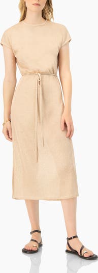 Knit tunic with dropped shoulders and side slits detail