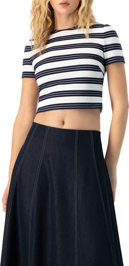 Striped Short Sleeve Round Neck Crop Top