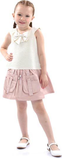 The Ivory Pink Strap Bow Shorts Set pairs playful charm with warm-weather ease. The ivory top features soft pink straps and a sweet bow accent, while the matching shorts offer a comfortable, breezy fit — perfect for sunny days and special outings alike. Lightweight and easy to wear, this set blends girly elegance with everyday comfort, making it a go-to favorite for stylish little moments.
