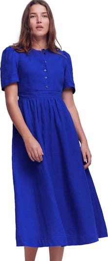 Crafted from airy, lightweight linen, this bold and bright midi dress transitions seamlessly from workweek to weekend.