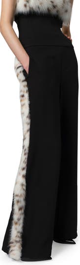 The fur is faux, but the attitude will be real when you step out in these sumptuous stretch-crepe pants cut in a wide-leg silhouette and trimmed along the outseams in a plush faux fur.