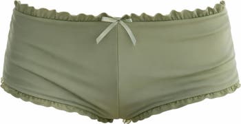 Get ready to elevate your swim style with the Camilla in Sage Bikini– chic, versatile, and effortlessly trendy! These booty short-style bottoms include a delicate chiffon trim and bow detailing.