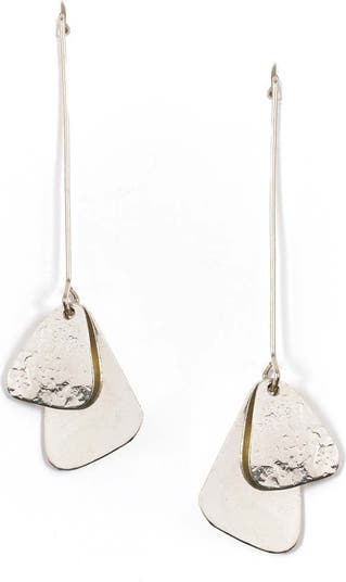 Delicate with just the right amount of edgethe Iyla Geometric Threader Earrings are the perfect mix of minimal and modern. These silver-tone earrings feature long hooks that thread through the ear and end with softly curved geometric shapes. With a mix of smooth and hammered textures, they catch the light beautifully as they move. Lightweight and effortlessly cool, theyre the kind of earrings youll reach for again and again.