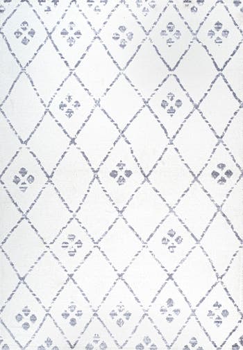 Inspired by vintage Beni Ourain Moroccan rugs, our easy-care rug has a family-friendly short pile. The classic Moroccan pattern features geometric gray diamonds in a trellis pattern, on a field of ivory. Anchor your Bohemian space; add minimalist flair to a bedroom, living room, dining room, kitchen or entry; this is a durable rug with timeless style.