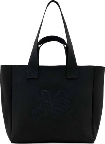 Tonal logo detailing makes a subtle statement on a spacious tote fashioned with multiple straps for versatile wear.