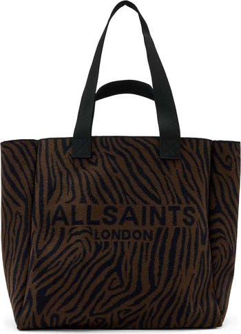 Bold zebra stripes enhance the modern sophistication of this spacious tote featuring dual interior pockets for optimal organization.