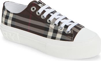 Old-school style looks new again with this low-top canvas sneaker featuring Burberry's iconic checks and raised logo letters wrapping the heel.