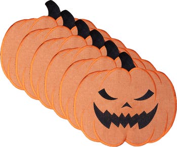 - Ideal for Halloween gatherings, fall dinners, or casual dining, these round placemats bring festive charm to your tabletop while protecting surfaces from scratches and spills, making them both decorative and practical for daily and seasonal use. Featuring cheerful jack o’ lantern accents, this set of six 17-inch round placemats creates a warm and inviting autumn atmosphere, enhancing your dining table with vibrant seasonal style that complements fall and harvest-themed décor. Perfect for everyday meals or themed parties, these placemats can be styled across kitchen and dining tables, sideboards, or buffet spreads, offering functionality and visual appeal that transitions effortlessly from casual to festive occasions. Crafted from 100% polyester, these machine washable placemats are designed for durability and long-lasting use. Their sturdy construction makes them reliable for repeated use throughout the season, while offering easy cleanup after meals.